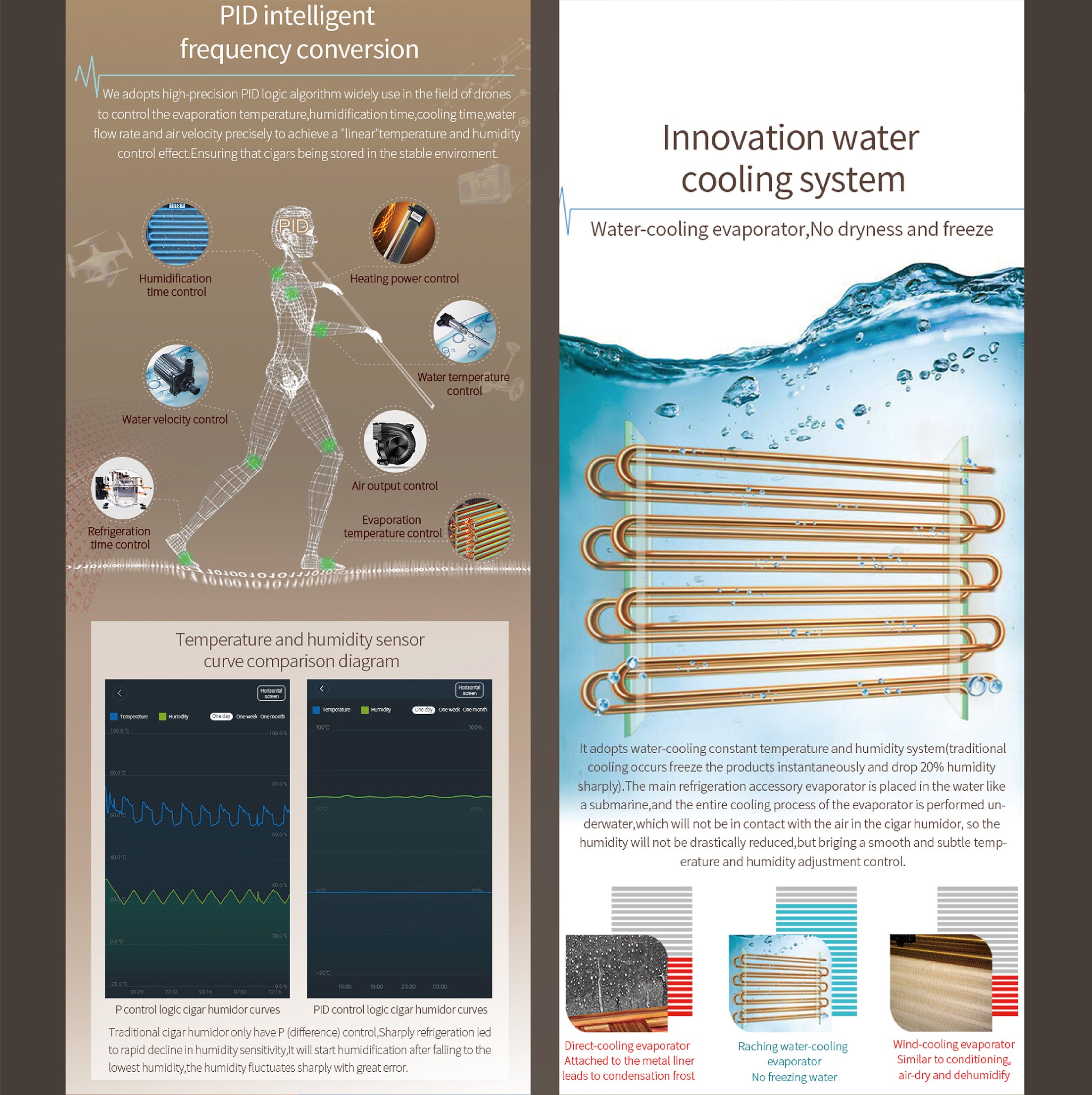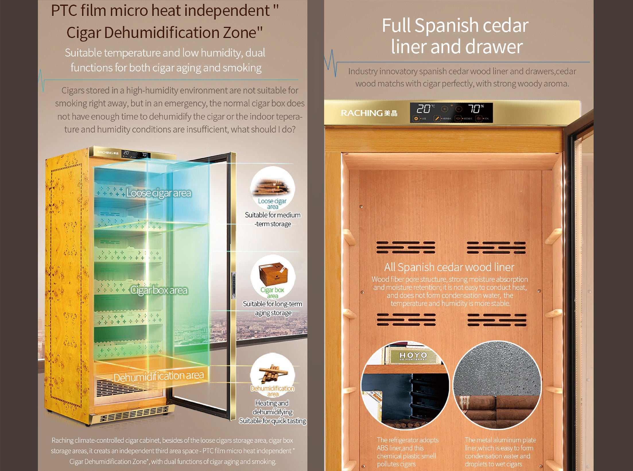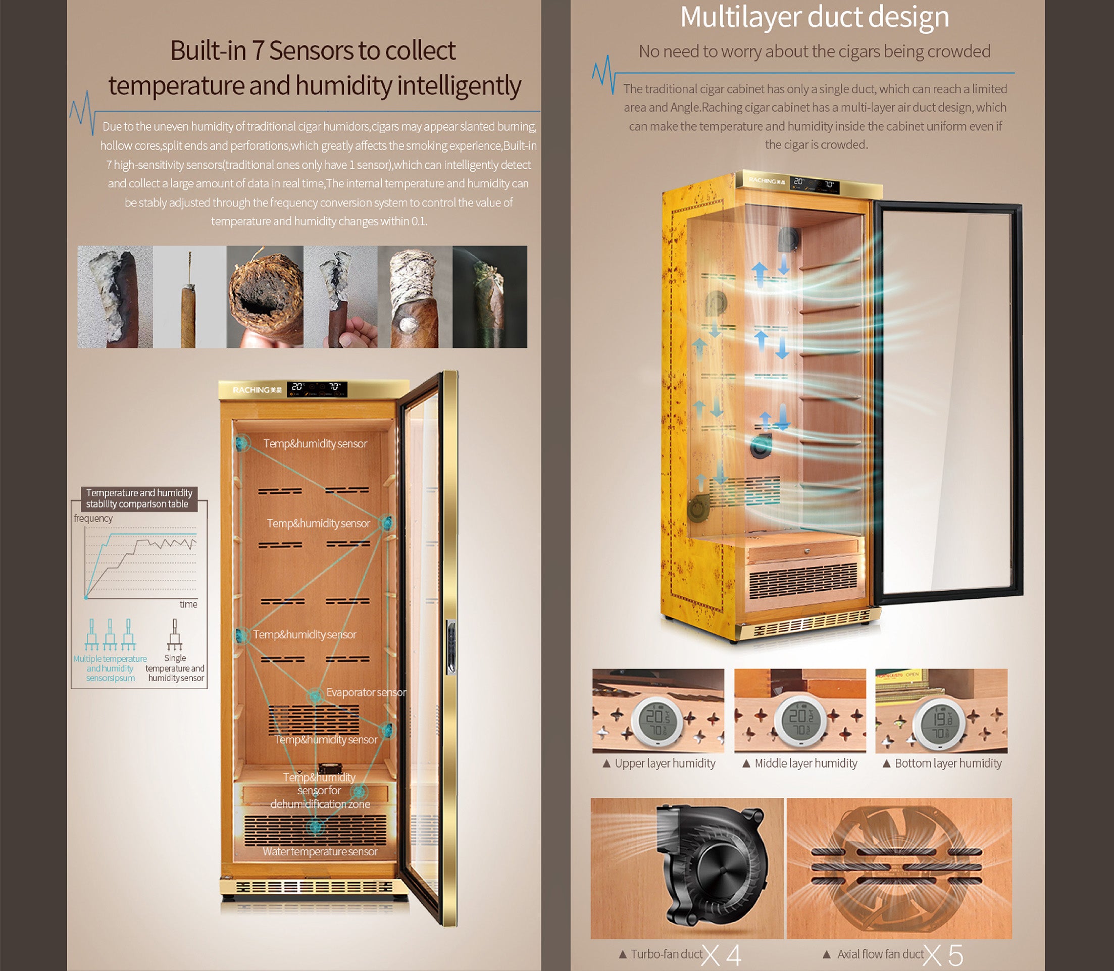 - STORE&AGING: The cabinet has build-in humidity, fan cooling, PTC Heating & dehumidify system which contributes a constant temperature and humidity environment to keep your stick at the best status. Perfect for store and aging your stick.