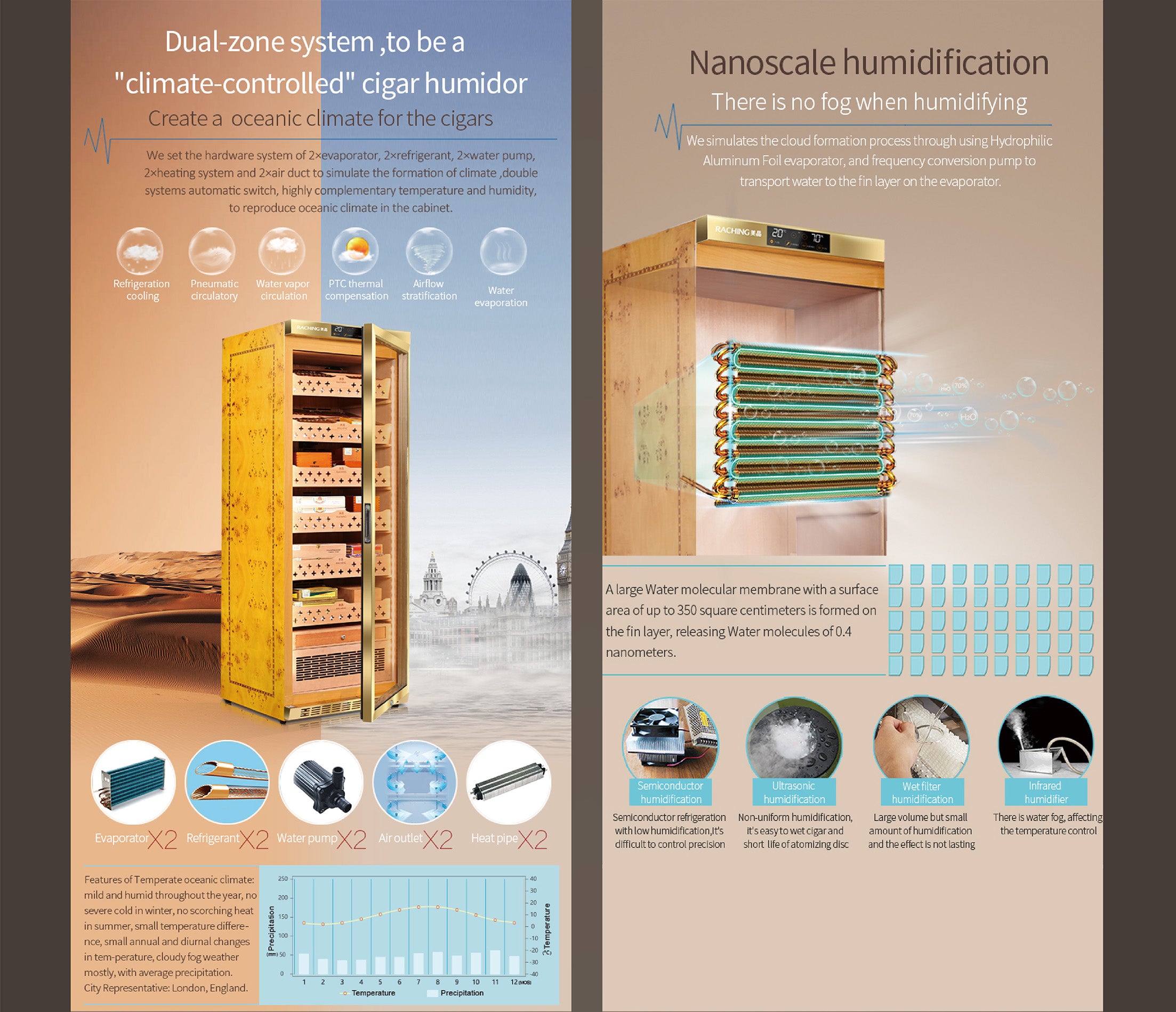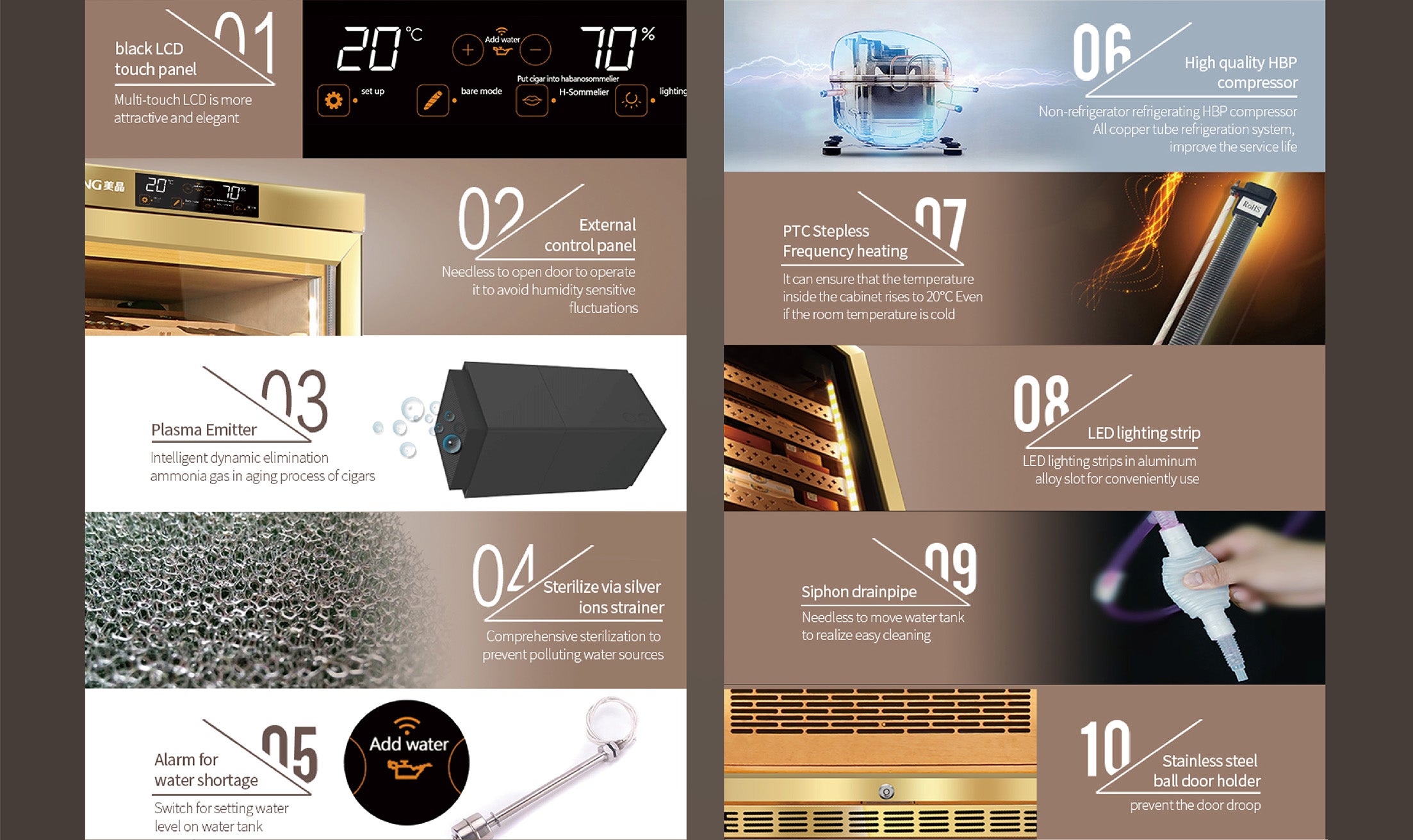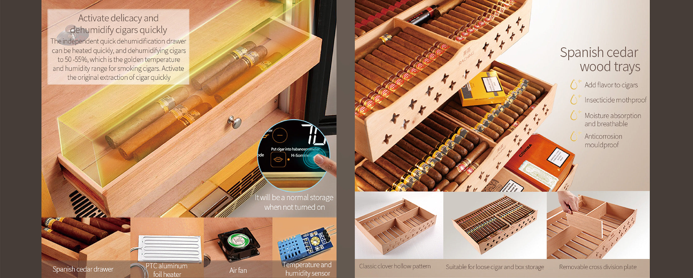 - STORE&AGING: The cabinet has build-in humidity, fan cooling, PTC Heating & dehumidify system which contributes a constant temperature and humidity environment to keep your stick at the best status. Perfect for store and aging your stick.