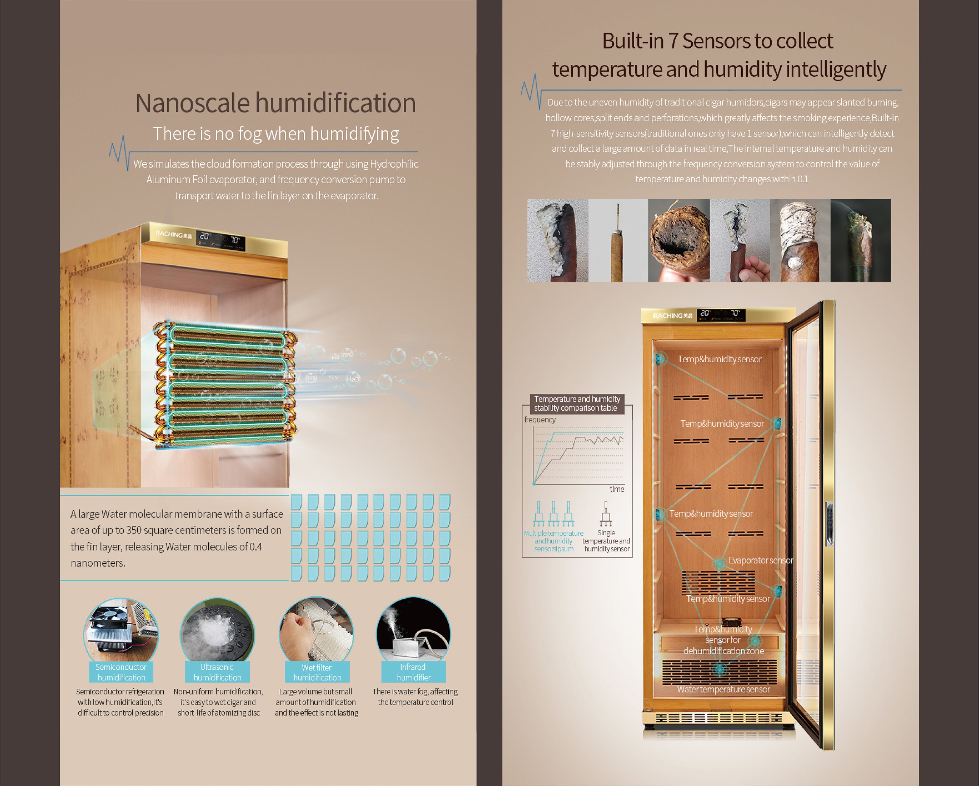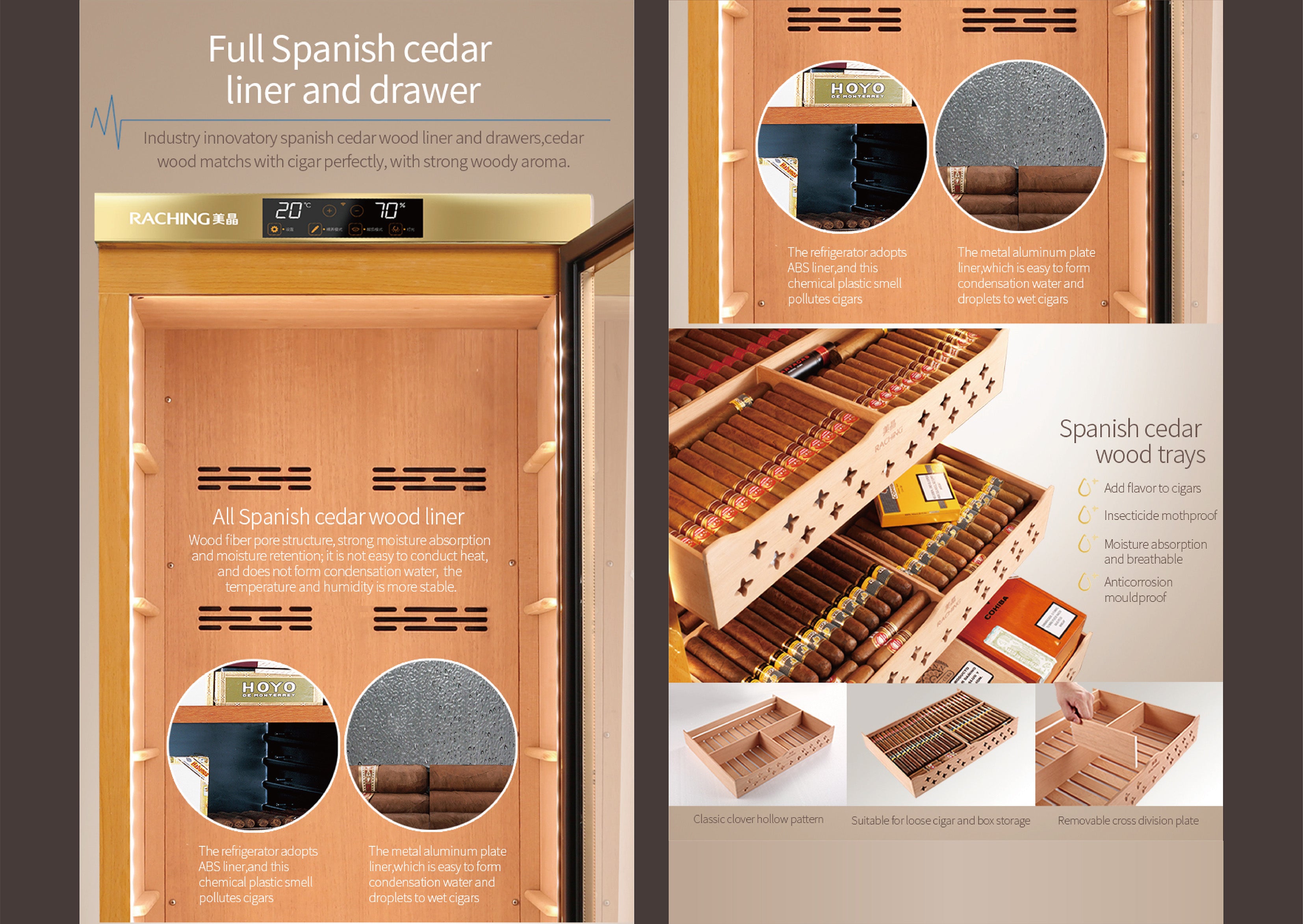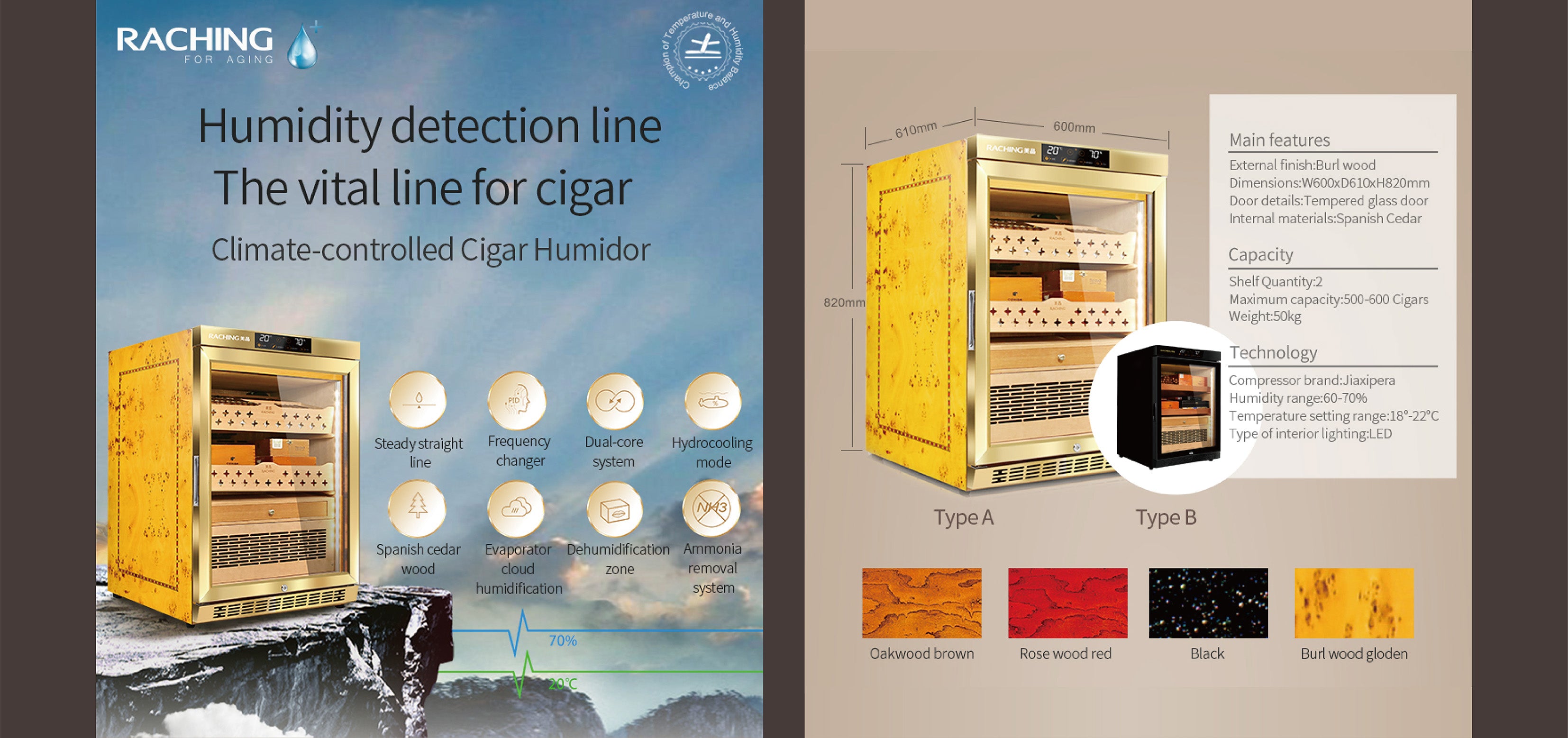 - STORE&AGING: The cabinet has build-in humidity, fan cooling, PTC Heating & dehumidify system which contributes a constant temperature and humidity environment to keep your stick at the best status. Perfect for store and aging your stick.