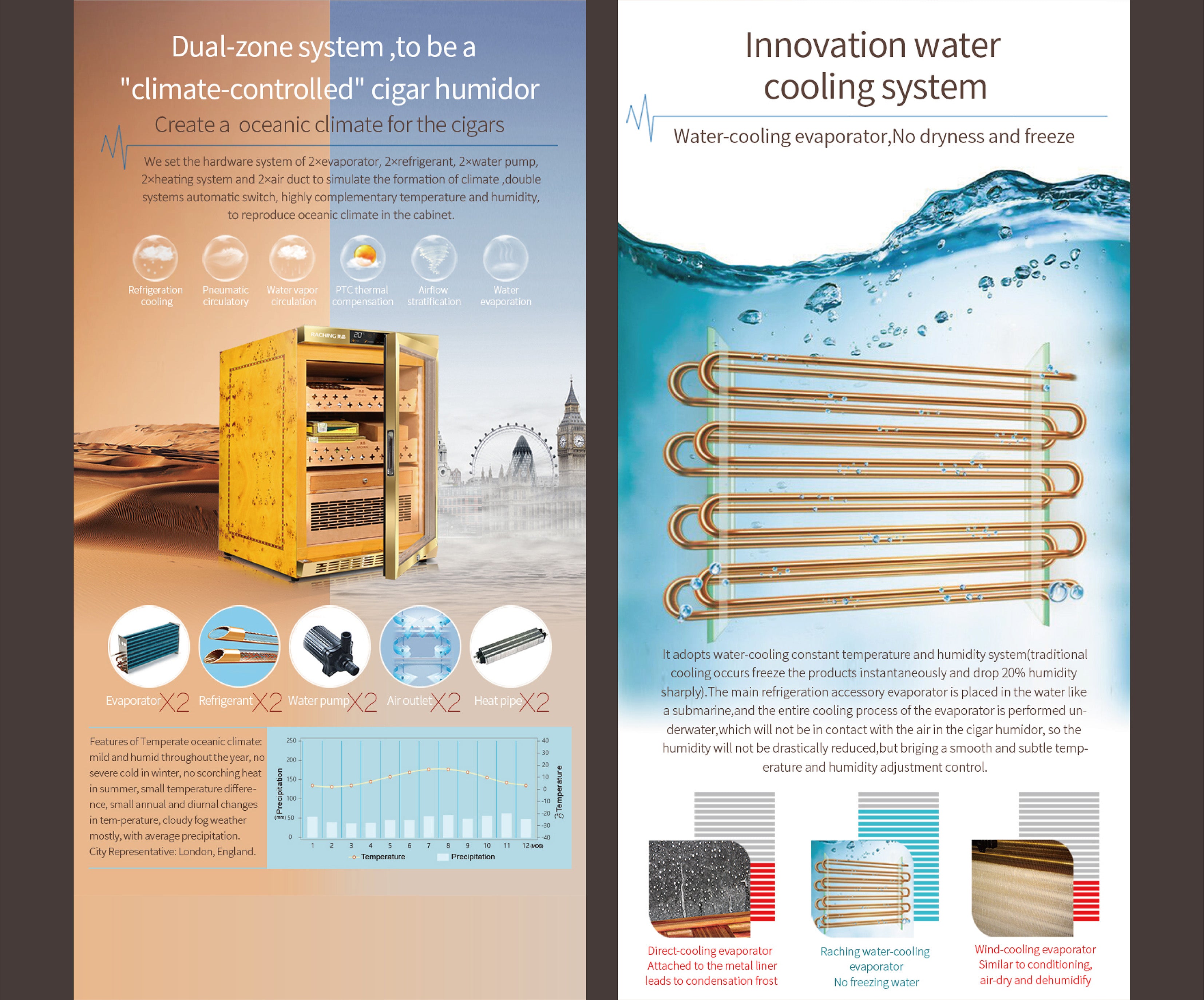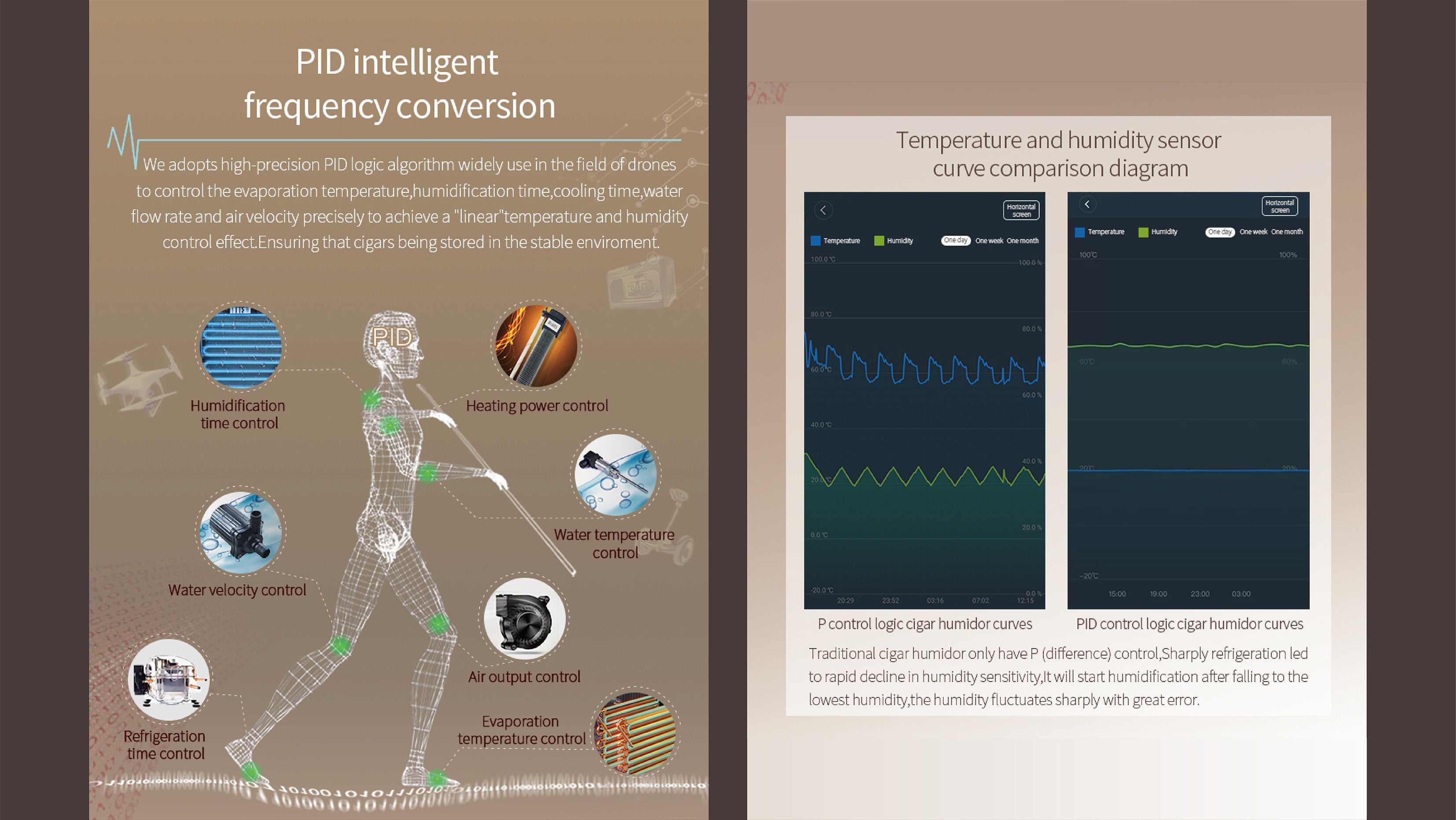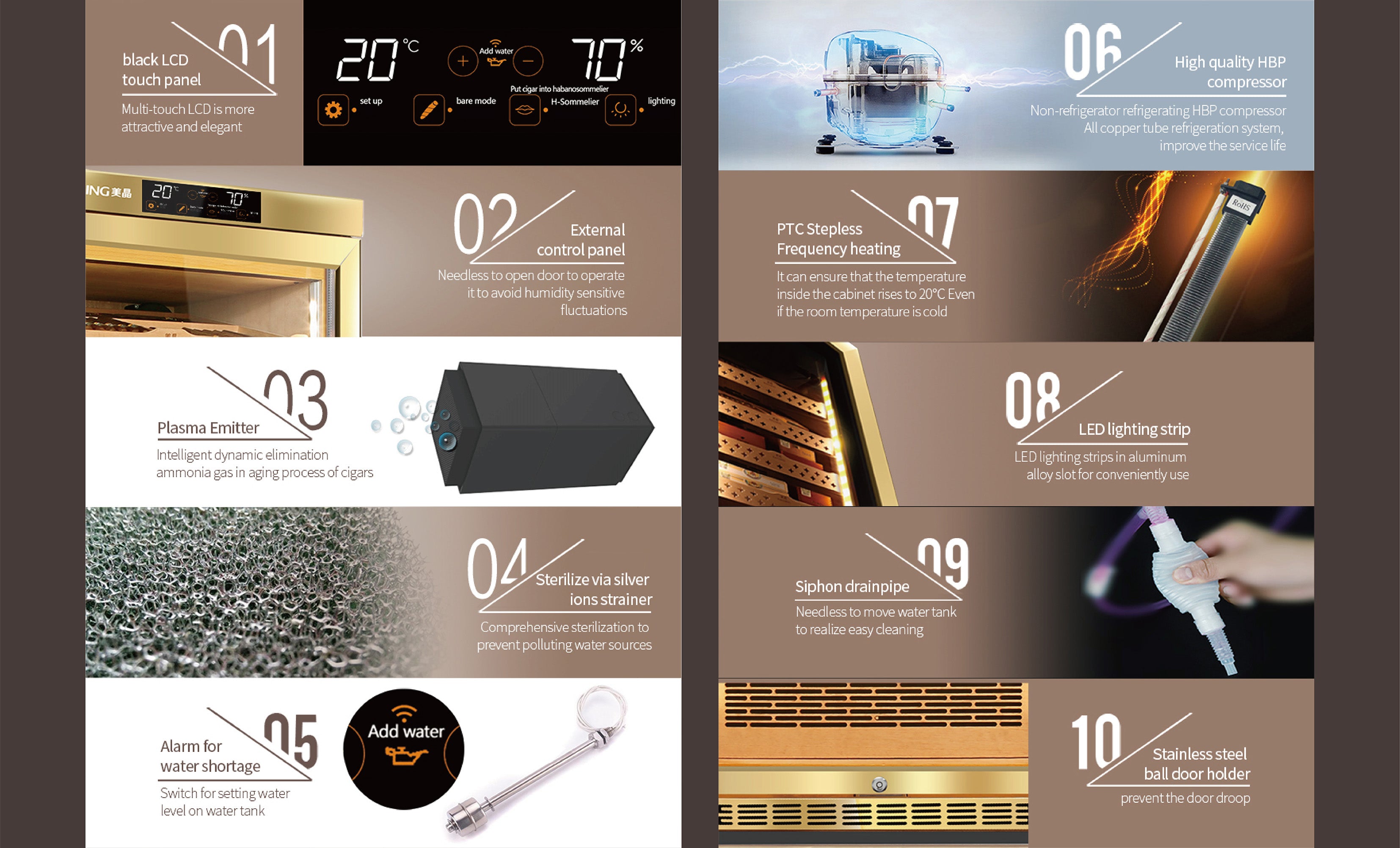 - STORE&AGING: The cabinet has build-in humidity, fan cooling, PTC Heating & dehumidify system which contributes a constant temperature and humidity environment to keep your stick at the best status. Perfect for store and aging your stick.